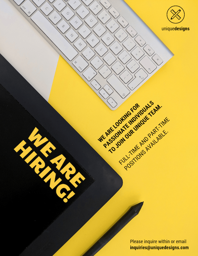 poster creative hiring flyer idea yellow background templates template ways event backgrounds venngage posters tips business fun incorporate company recruitment
